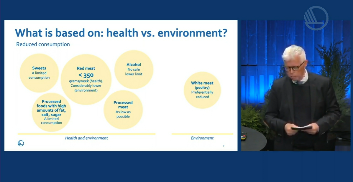 De nye kostholdsrådene er å spise mest planter, mye mer frukt og grønt, fullkorn og belgvekster, og halvere kjøtt, både rødt og hvitt, bl.a. ved å unngå prosessert kjøtt. Det betyr å ikke spise mer enn 350 gram rødt (svin, lam og storfe) og maks 175 gram hvitt kjøtt (kalkun og kylling, beregnet ift dagens inntak) – målt i spiseklart vekt – per uke.